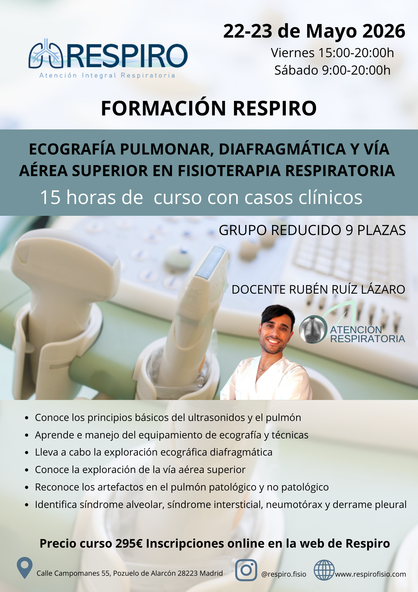 NUEVO CURSO 15 HORAS CON ECOGRAFÍA PULMONAR, DIAFRAGMÁTICA Y VÍA AÉREA SUPERIOR. INCLUYE SIMULACIÓN Y PRÁCTICA